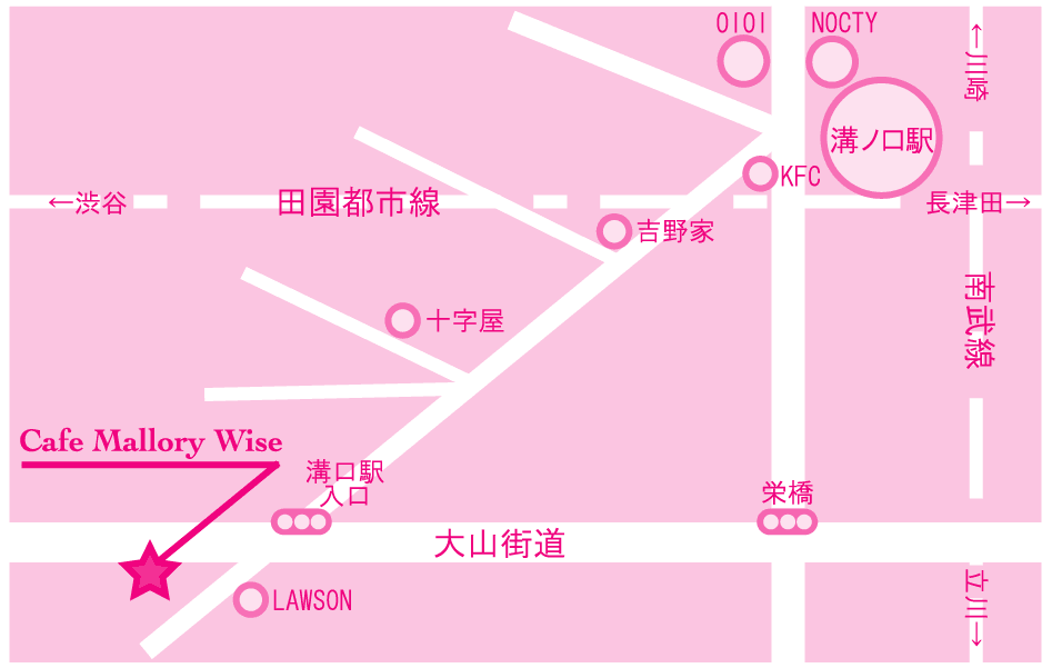 東急田園都市線溝ノ口、JR南武線武蔵溝ノ口より5分くらい。